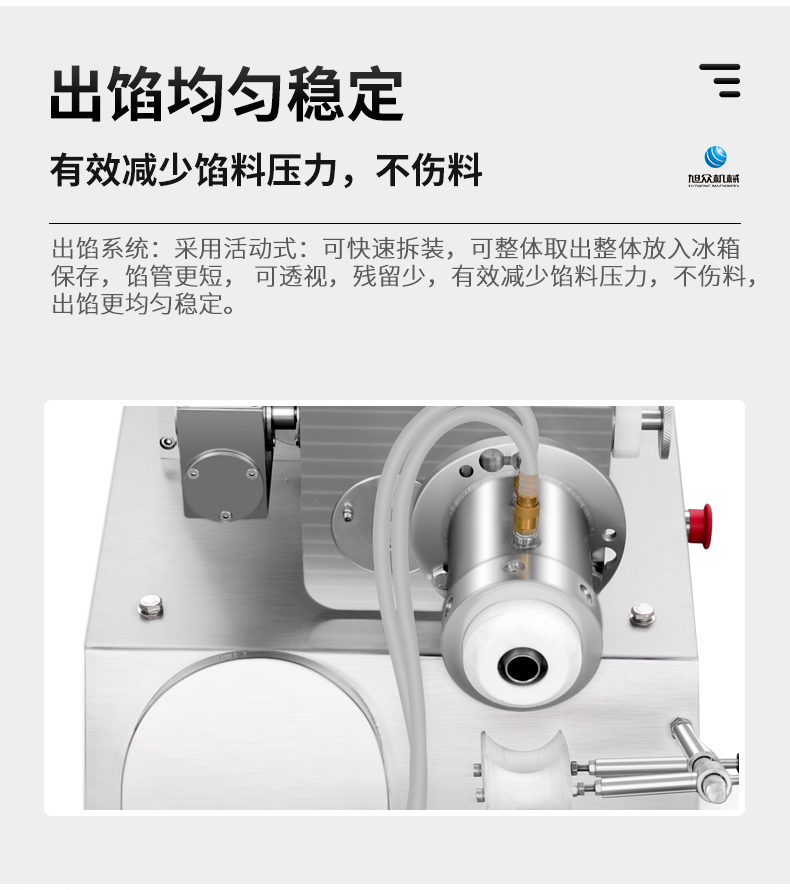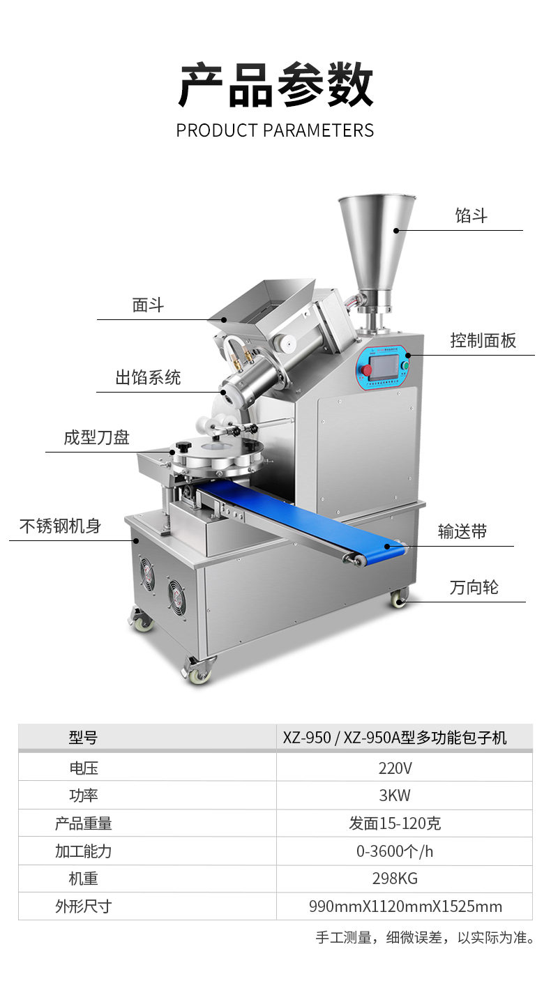 XZ-950型多功能包子機(jī),多功能包子機(jī),出面快速、不傷面筋。無需使用手壓面/推面,帶有自動(dòng)恒溫制冷系統(tǒng),占地空間小,放料輕松。