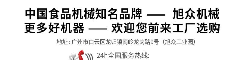 廣州旭眾食品機(jī)械有限公司是一家集科研開發(fā),生產(chǎn)設(shè)計(jì),營銷服務(wù)為一體的現(xiàn)代化生產(chǎn)企業(yè)?,F(xiàn)代化生產(chǎn)車間,精湛制造技術(shù),所產(chǎn)機(jī)械歷經(jīng)市場重重考驗(yàn),不斷贏得海內(nèi)外客戶的贊譽(yù)。