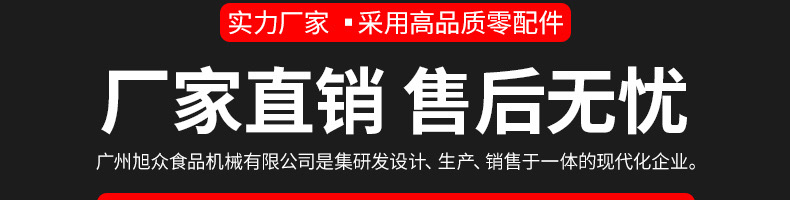 廣州旭眾食品機(jī)械有限公司是一家集科研開發(fā),生產(chǎn)設(shè)計(jì),營銷服務(wù)為一體的現(xiàn)代化生產(chǎn)企業(yè)?,F(xiàn)代化生產(chǎn)車間,精湛制造技術(shù),所產(chǎn)機(jī)械歷經(jīng)市場(chǎng)重重考驗(yàn),不斷贏得海內(nèi)外客戶的贊譽(yù)。