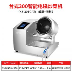 XZ-30TCP臺式300智能電磁炒菜機(觸屏+噴料),可以實現(xiàn)自動化烹飪過程的智能化設備,語音播報、自動噴料、旋轉翻炒、快速出菜。實現(xiàn)自動化烹飪,新一代微電腦操控智能烹飪設備、顛覆傳統(tǒng)炒菜模式。5000W猛火爆炒美食更鮮香