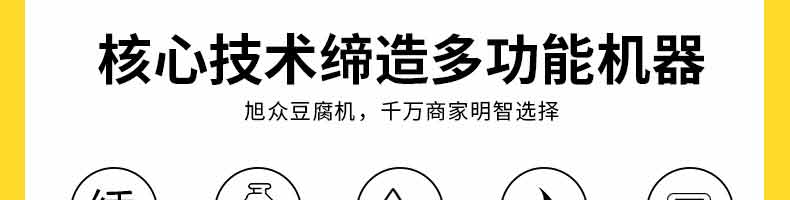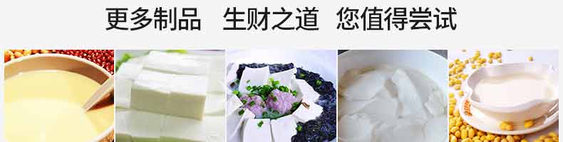 XZ-60智能豆腐機(jī),一機(jī)多用:可生產(chǎn)豆腐系列產(chǎn)品:?jiǎn)紊?,老)豆腐、多彩?腐、單色豆腐皮、多色豆腐皮、彩色豆腐干、豆?jié){、豆花等豆制品制作,還可以與其他設(shè)備和工藝配套生 產(chǎn)更多的豆制品。