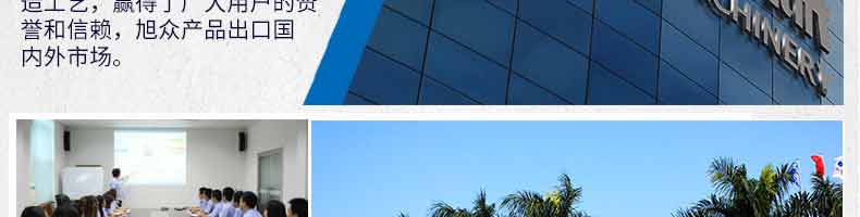 廣州旭眾食品機(jī)械有限公司是一家集科研開(kāi)發(fā),生產(chǎn)設(shè)計(jì),營(yíng)銷(xiāo)服務(wù)為一體的現(xiàn)代化生產(chǎn)企業(yè)?,F(xiàn)代化生產(chǎn)車(chē)間,精湛制造技術(shù),所產(chǎn)機(jī)械歷經(jīng)市場(chǎng)重重考驗(yàn),不斷贏得海內(nèi)外客戶的贊譽(yù)。
