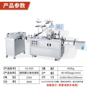 XZ-650包裝機(jī),三維包裝機(jī),全自動化操作出膜、切膜、包膜、熱封一次完成??蓮V泛應(yīng)用多種產(chǎn)品,適用包裝的產(chǎn)品有食品、撲克牌、香煙盒化妝品、日用品、文具用品等類型產(chǎn)品。
