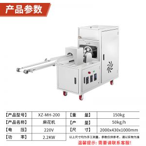 XZ-MH-200麻花機(jī),技術(shù)支持、贈送配方、支持定制,1小時加工60斤麻花。切段均勺、且不粘面,麻花長短可調(diào)??赏ㄟ^調(diào)節(jié)切刀時間、控制麻花的長度。通過精確控制成型,確保每根麻花大小均勻,外觀一致,提高產(chǎn)品競爭力。