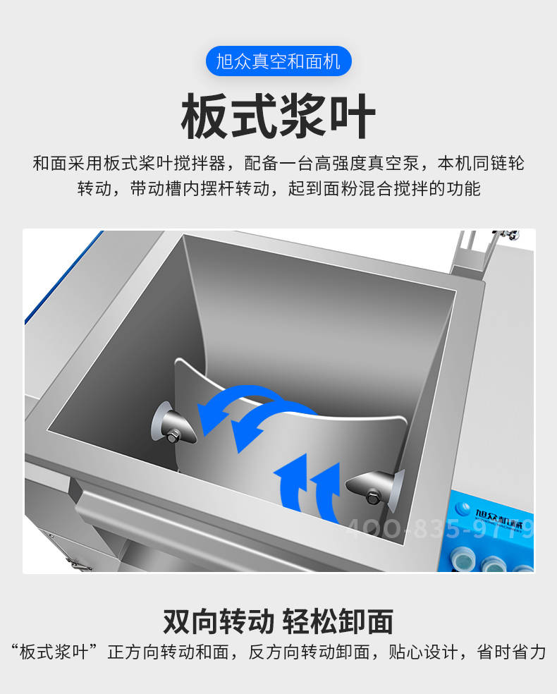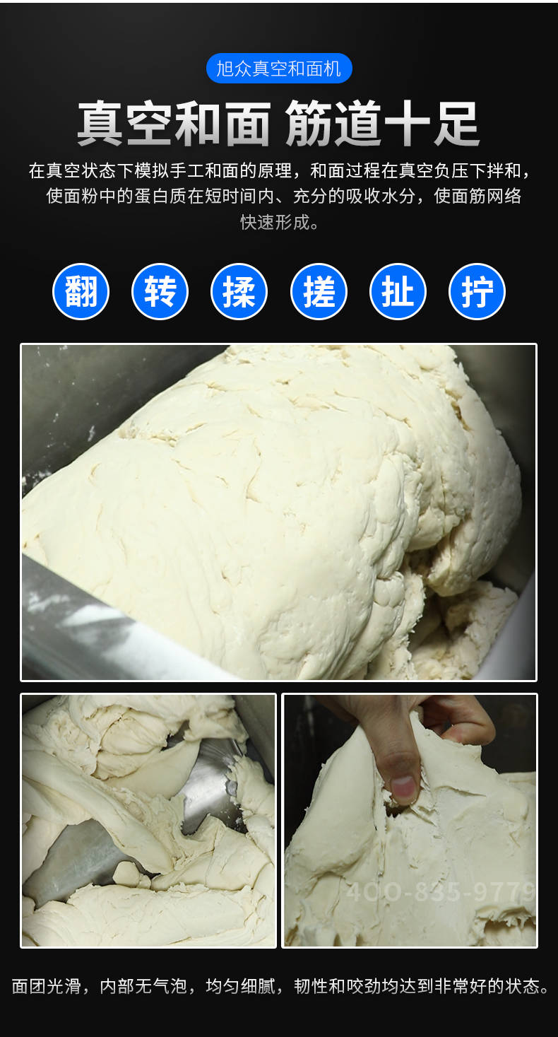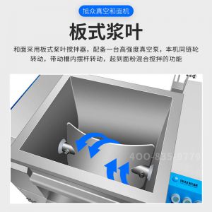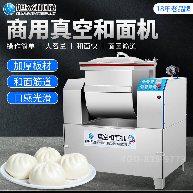 XZZK-25真空和面機(jī),商用真空和面機(jī),操作簡單、大容量、和面快、面團(tuán)筋道。在真空狀態(tài)下模擬手工和面的原理,和面過程在真空負(fù)壓下拌和,使面粉中的蛋白質(zhì)在短時(shí)間內(nèi)、充分的吸收水分,使面筋網(wǎng)絡(luò)快速形成。