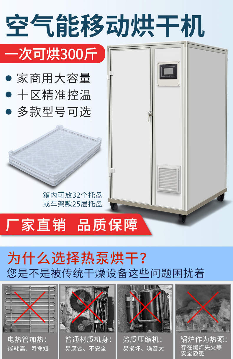 烘干抽濕一體機(jī)(帶烘房),空氣能移動(dòng)烘干機(jī),一次可烘300斤、家商用大容量、十區(qū)精準(zhǔn)控溫、多款型號(hào)可選。智能烘干時(shí)代出類拔萃的新體驗(yàn)