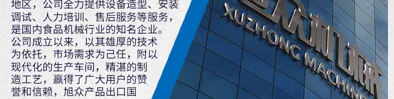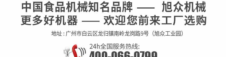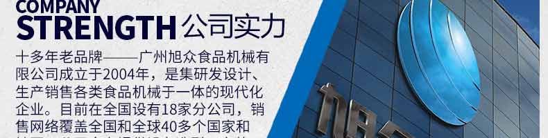 廣州旭眾食品機(jī)械有限公司是一家集科研開發(fā),生產(chǎn)設(shè)計(jì),營銷服務(wù)為一體的現(xiàn)代化生產(chǎn)企業(yè)?,F(xiàn)代化生產(chǎn)車間,精湛制造技術(shù),所產(chǎn)機(jī)械歷經(jīng)市場重重考驗(yàn),不斷贏得海內(nèi)外客戶的贊譽(yù)。