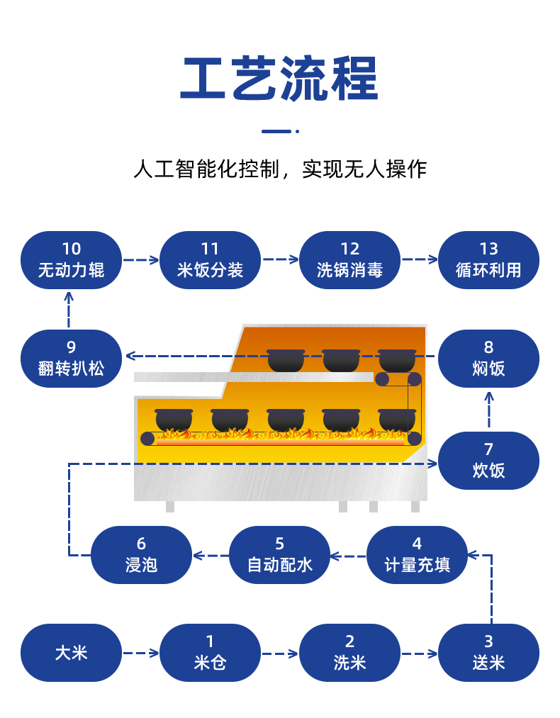 米飯生產(chǎn)線,主要結(jié)構(gòu):不銹鋼箱體,密閉不銹鋼飯盤,自動(dòng)加熱循環(huán)系統(tǒng)。適用對(duì)象:大型米飯加工中心、快餐公司、大型配餐中心企事業(yè)單位、學(xué)校食堂、釀造企業(yè)等。實(shí)力大咖商用好幫手。提供培訓(xùn)、指導(dǎo)和工藝傳授,品牌服務(wù)有保障。