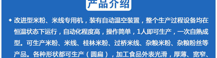 SZ-400多功能米粉機(jī),生產(chǎn)多樣性可生產(chǎn)米粉、米線、粉絲、粉條、、年糕、玉米面條、各種雜糧粉絲、各種面條、雜糧面條、彩色面條以及以紅薯、玉米、大豆、蠶豆等制成淀粉為原料的等多種食品而且每種食品厚薄、粗細(xì)等規(guī)格可根據(jù)需要任意調(diào)整。