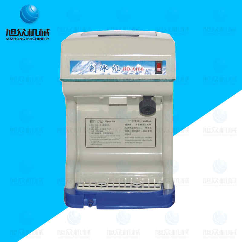 A188刨冰機(jī),可根據(jù)需要調(diào)整刀刃調(diào)解柄即可加工各種粗細(xì)不同的刨冰。本機(jī)結(jié)構(gòu)緊湊、運(yùn)轉(zhuǎn)平穩(wěn)可靠,具有體積小、重量輕、外形美觀、操作方便、工作效率高等優(yōu)點。