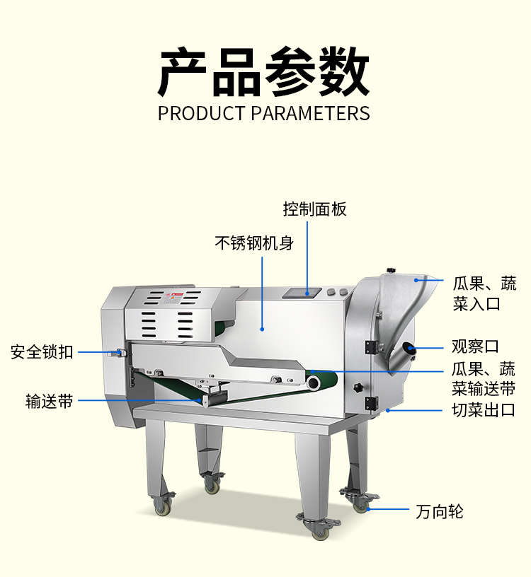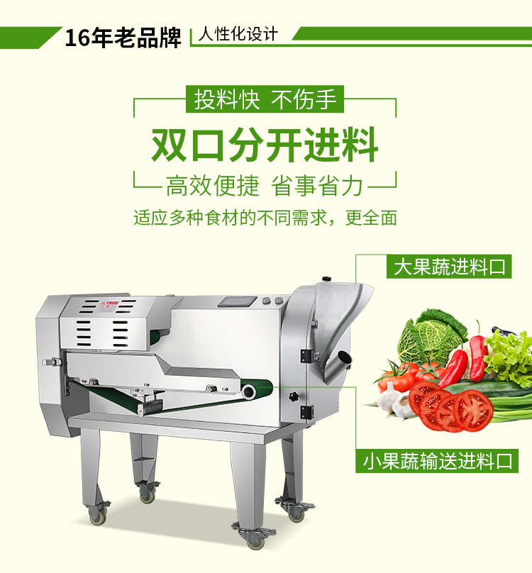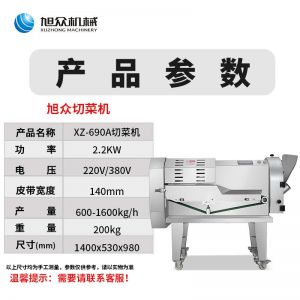 XZ-690A型多功能切菜機,工作效率高,幫你省人工費。1小時可切600kg-1600kg/h,1臺機器等于多名廚師同時為您工作。一機多用,可切瓜果、蔬菜、藥材,刀片可進行更換,設(shè)計周到,結(jié)構(gòu)合理,簡單輕松應(yīng)對。
