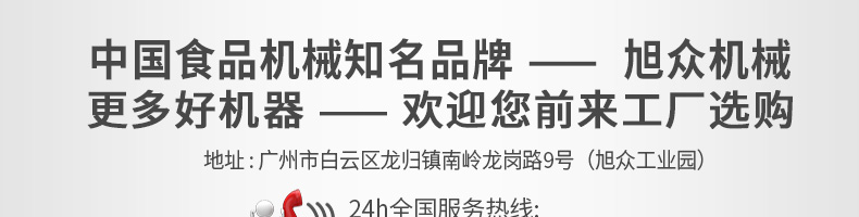 廣州旭眾食品機械有限公司是一家集科研開發(fā),生產(chǎn)設(shè)計,營銷服務(wù)為一體的現(xiàn)代化生產(chǎn)企業(yè)?,F(xiàn)代化生產(chǎn)車間,精湛制造技術(shù),所產(chǎn)機械歷經(jīng)市場重重考驗,不斷贏得海內(nèi)外客戶的贊譽。