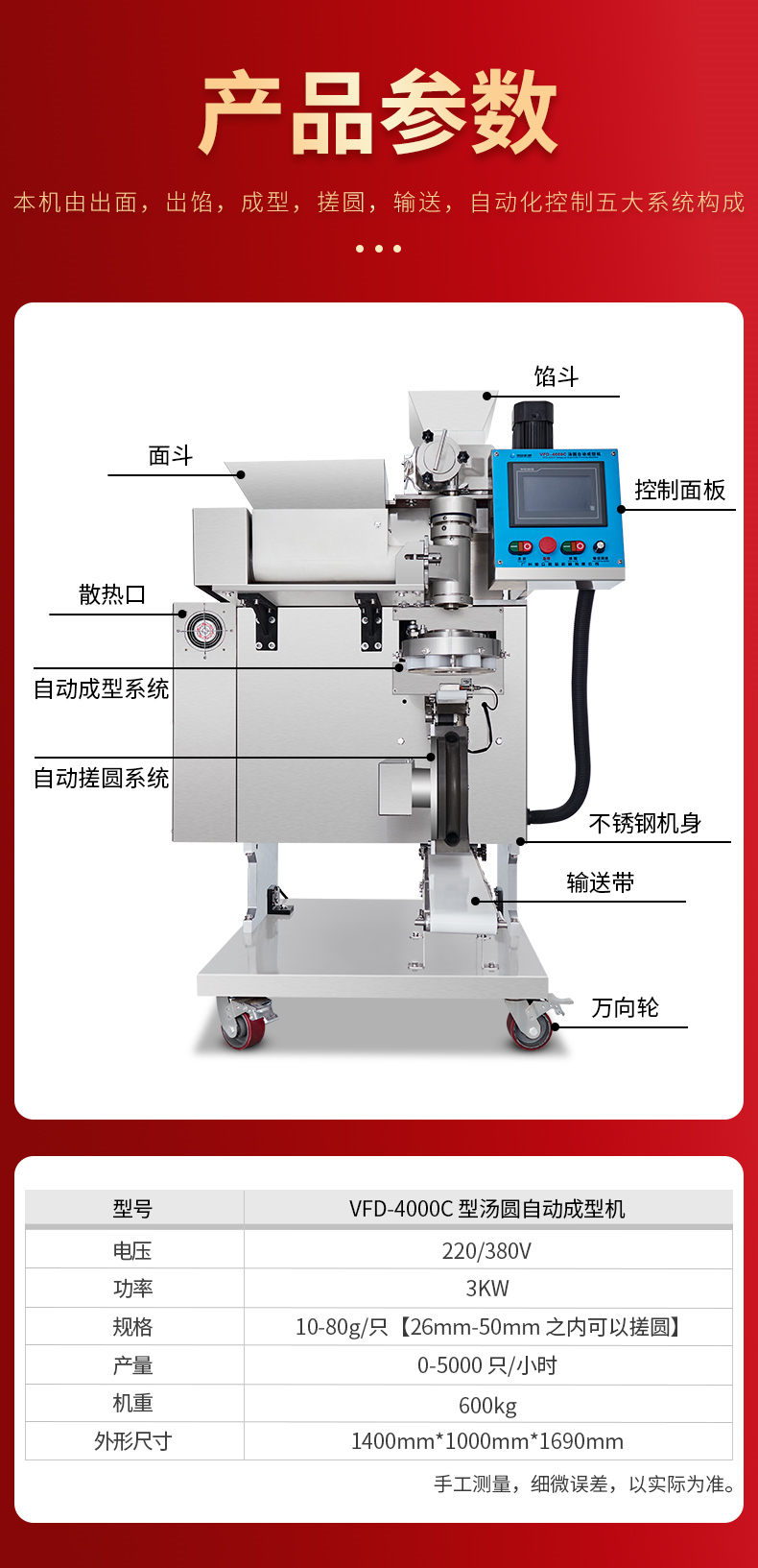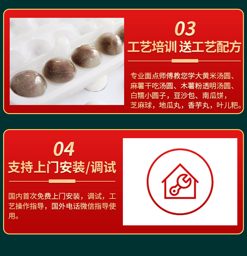 4000C湯圓機(jī),多功能湯圓機(jī),運(yùn)行穩(wěn)定、時(shí)產(chǎn)量高、大小可調(diào)。制品多樣性生產(chǎn)各種大小規(guī)格不同的有餡湯圓,無(wú)餡湯圓、豆沙包、南瓜餅,芝麻球,地瓜丸,香芋丸,葉兒粑,青團(tuán),粘豆包等。