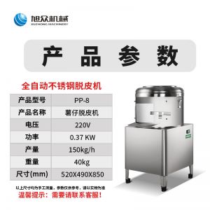 PP8、PP15薯仔脫皮機,土豆脫皮機,是采用離心旋轉,摩擦脫皮技術,工作效率高,主要用于土豆,芋頭表面脫皮。適用于肯德基店、酒店、食堂等。