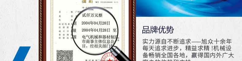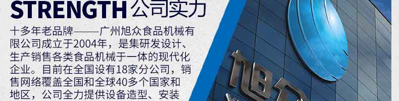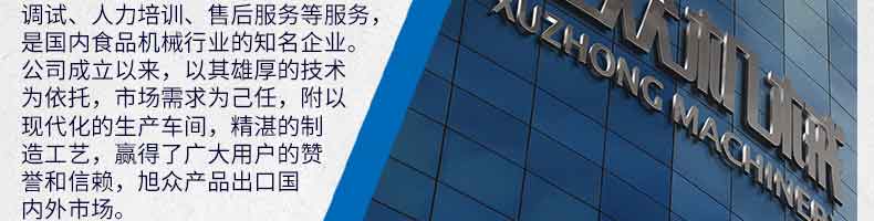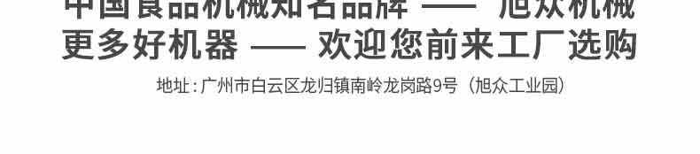廣州旭眾食品機(jī)械有限公司是一家集科研開(kāi)發(fā),生產(chǎn)設(shè)計(jì),營(yíng)銷(xiāo)服務(wù)為一體的現(xiàn)代化生產(chǎn)企業(yè)?,F(xiàn)代化生產(chǎn)車(chē)間,精湛制造技術(shù),所產(chǎn)機(jī)械歷經(jīng)市場(chǎng)重重考驗(yàn),不斷贏得海內(nèi)外客戶(hù)的贊譽(yù)。