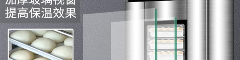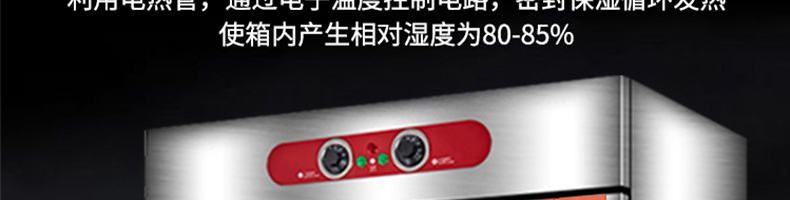 VF系列醒發(fā)箱,熱風(fēng)循環(huán)、恒溫發(fā)酵。熱氣均勻分布,多盤發(fā)酵制作美味一樣到底。恒溫醒發(fā)箱完美解決利用電熱管,通過(guò)電子溫度控制電路,密封保濕循環(huán)發(fā)熱使箱內(nèi)產(chǎn)生相對(duì)濕度為80-85%