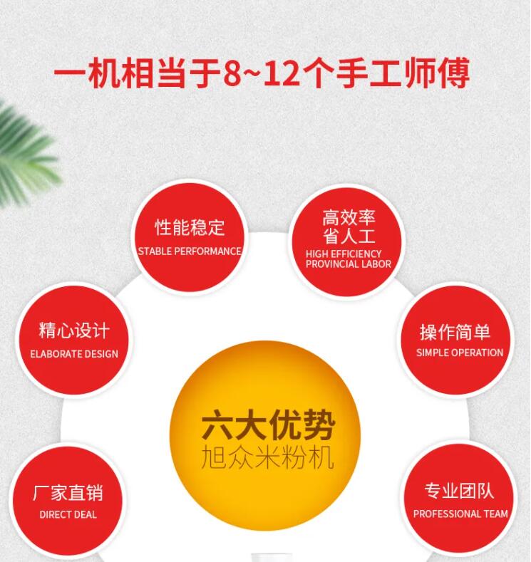 旭眾米粉機,型號多,投資規(guī)模可大可小,除了適用于個體,還適用于鄉(xiāng)鎮(zhèn)加工廠及城市食品加工廠、民營企業(yè)等。