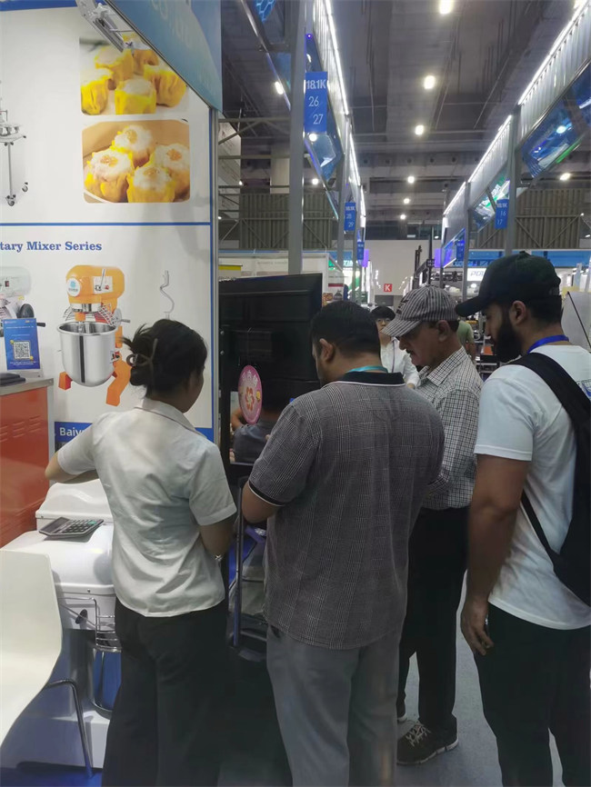展臺(tái)上整齊地?cái)[放著各種食品加工機(jī)械,從冰激凌機(jī)到包子機(jī)、和面機(jī)、攪拌機(jī)等,每一樣產(chǎn)品都展示著公司的技術(shù)實(shí)力和創(chuàng)新能力。