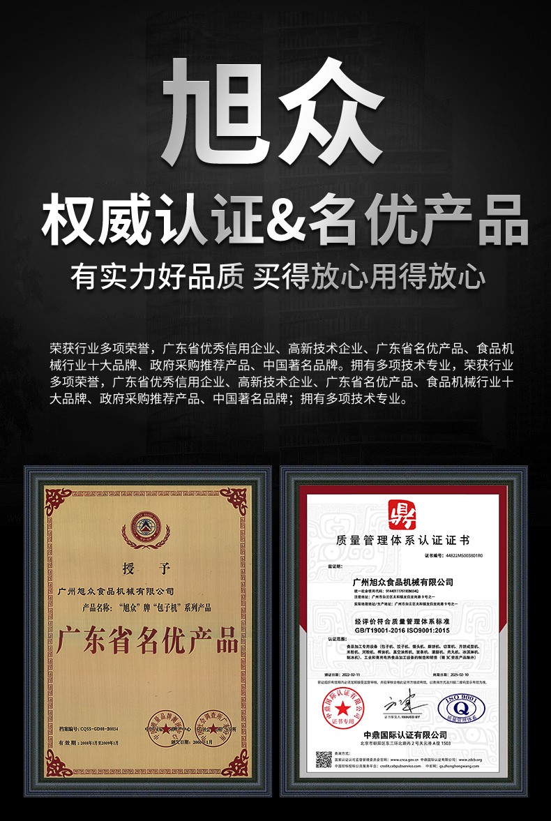 廣州旭眾食品機械有限公司是一家集科研開發(fā),生產(chǎn)設計,營銷服務為一體的現(xiàn)代化生產(chǎn)企業(yè)。現(xiàn)代化生產(chǎn)車間,精湛制造技術,所產(chǎn)機械歷經(jīng)市場重重考驗,不斷贏得海內外客戶的贊譽。