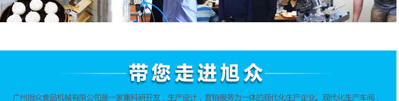 廣州旭眾食品機械有限公司是一家集科研開發(fā),生產(chǎn)設計,營銷服務為一體的現(xiàn)代化生產(chǎn)企業(yè)?,F(xiàn)代化生產(chǎn)車間,精湛制造技術(shù),所產(chǎn)機械歷經(jīng)市場重重考驗,不斷贏得海內(nèi)外客戶的贊譽。