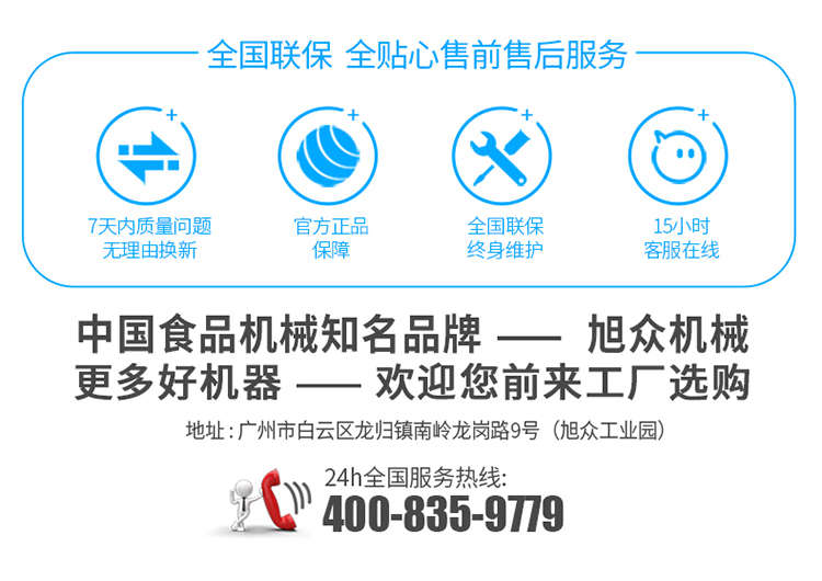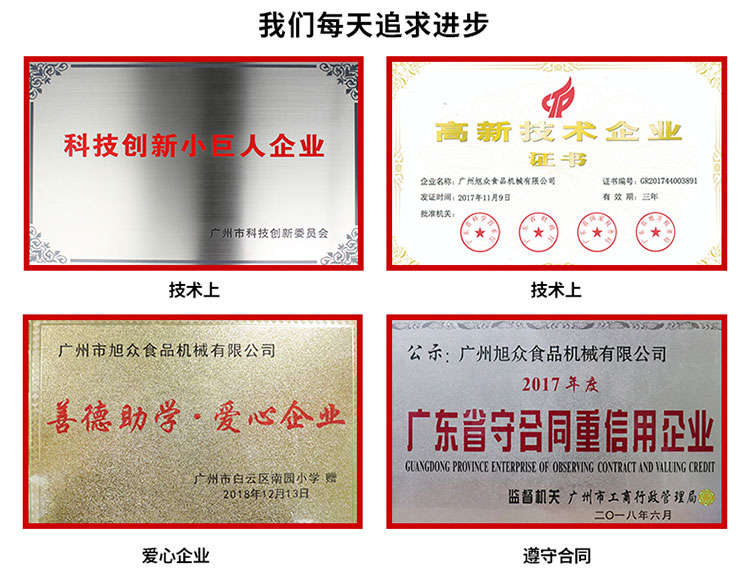 廣州旭眾食品機(jī)械有限公司是一家集科研開發(fā),生產(chǎn)設(shè)計,營銷服務(wù)為一體的現(xiàn)代化生產(chǎn)企業(yè)。現(xiàn)代化生產(chǎn)車間,精湛制造技術(shù),所產(chǎn)機(jī)械歷經(jīng)市場重重考驗,不斷贏得海內(nèi)外客戶的贊譽(yù)。