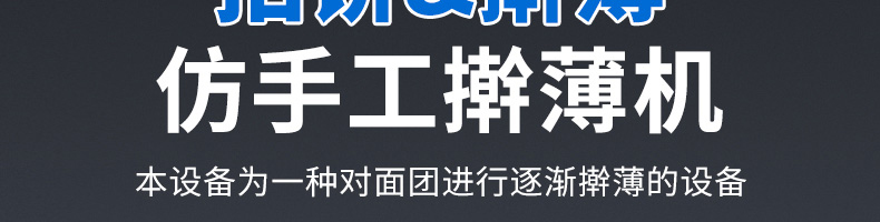 XZ-150型搟薄機(jī),為一種對(duì)面團(tuán)可進(jìn)行氣動(dòng)拍餅或仿手工搟薄的設(shè)備,可根據(jù)用戶需要對(duì)面團(tuán)的直徑、厚度進(jìn)行調(diào)整并將面團(tuán)按照設(shè)定的規(guī)格進(jìn)行搓圓摔搟薄。
