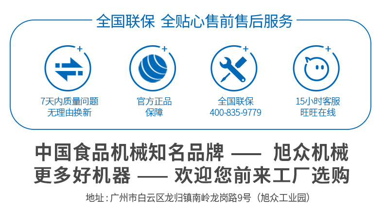 廣州旭眾食品機(jī)械有限公司是一家集科研開(kāi)發(fā),生產(chǎn)設(shè)計(jì),營(yíng)銷(xiāo)服務(wù)為一體的現(xiàn)代化生產(chǎn)企業(yè)。現(xiàn)代化生產(chǎn)車(chē)間,精湛制造技術(shù),所產(chǎn)機(jī)械歷經(jīng)市場(chǎng)重重考驗(yàn),不斷贏得海內(nèi)外客戶(hù)的贊譽(yù)。