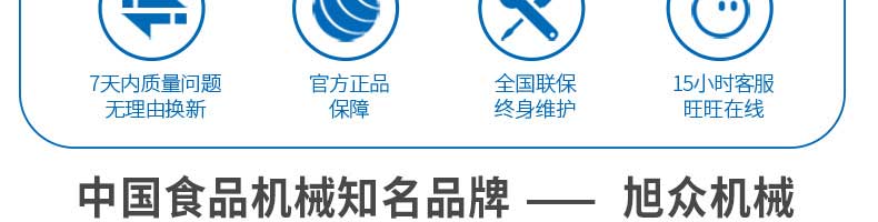 廣州旭眾食品機(jī)械有限公司是一家集科研開發(fā),生產(chǎn)設(shè)計(jì),營銷服務(wù)為一體的現(xiàn)代化生產(chǎn)企業(yè)?,F(xiàn)代化生產(chǎn)車間,精湛制造技術(shù),所產(chǎn)機(jī)械歷經(jīng)市場重重考驗(yàn),不斷贏得海內(nèi)外客戶的贊譽(yù)。