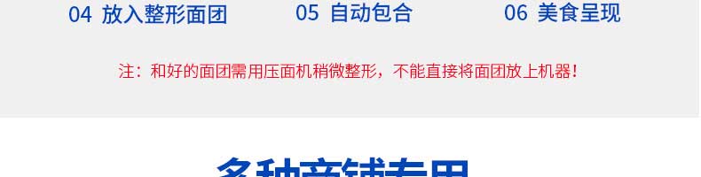 名稱JGB-280仿手工餃子機(jī) 電源220/380V 功率1.75kw 產(chǎn)量0-18000個(gè)/小時(shí) 尺寸1260*1230*1300mm 重量270KG 規(guī)格 其他