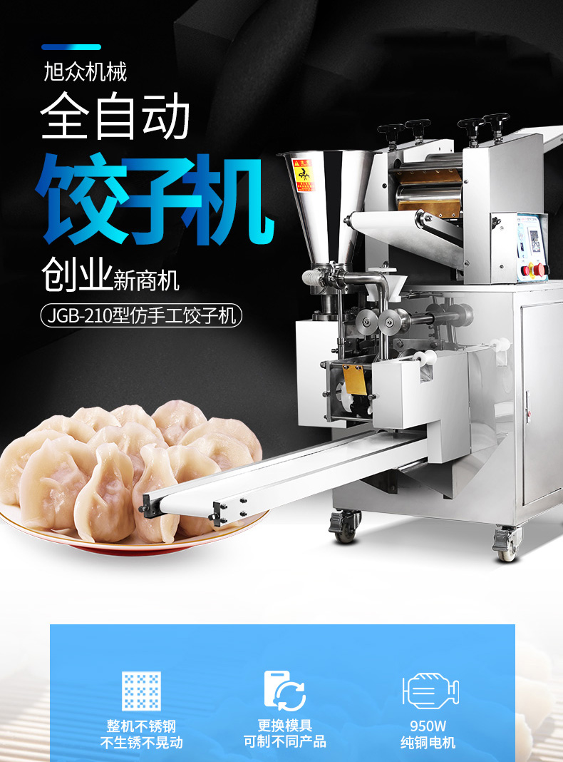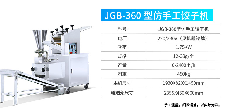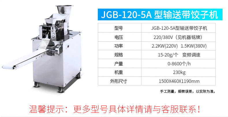 JGB-210型仿手工餃子機(jī),本機(jī)采用自動(dòng)壓面皮包餃子的新工藝技術(shù),本機(jī)可生產(chǎn)速凍餃子等,能生產(chǎn)各種肉餡、肉菜混合餡、全菜餡及其他種餡的餃子,適用于餃子館、食品生產(chǎn)廠家、賓館、飯店、餐廳、團(tuán)體食堂、學(xué)校、部隊(duì)。免費(fèi)上門(mén)安裝調(diào)試,贈(zèng)送面點(diǎn)工藝