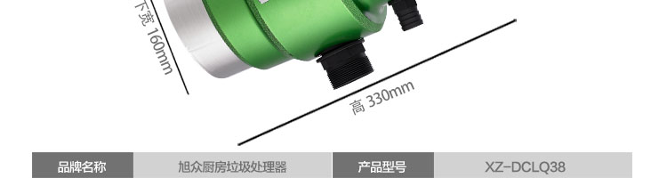 名稱(chēng)DCLQ38-廚房垃圾處理器 電源220V 功率0.38kw 產(chǎn)量 尺寸 重量5kg 規(guī)格 其他轉(zhuǎn)速3000R/min,研磨倉(cāng)容量1150ML