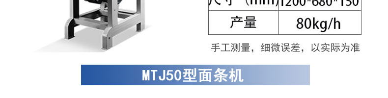 名稱50型全自動壓面面條機 電源220v 功率1.5kw 產(chǎn)量50kg/h 尺寸700*450*1100mm 重量95kg 規(guī)格 其他