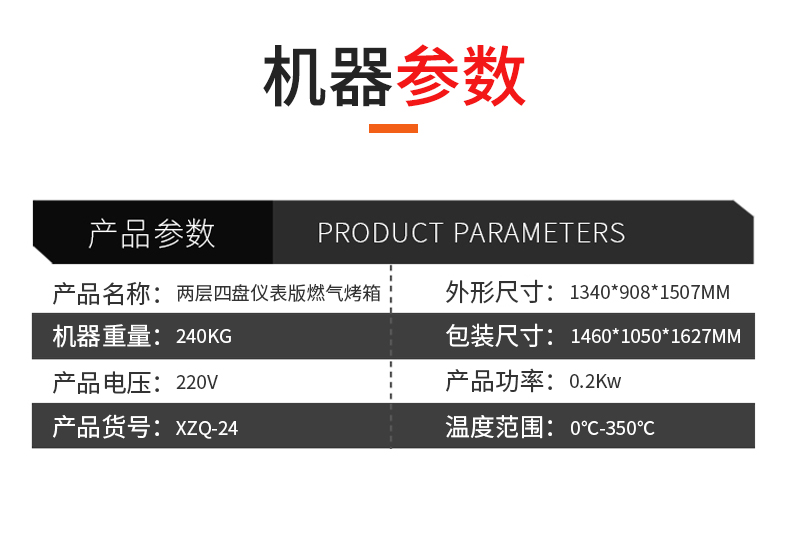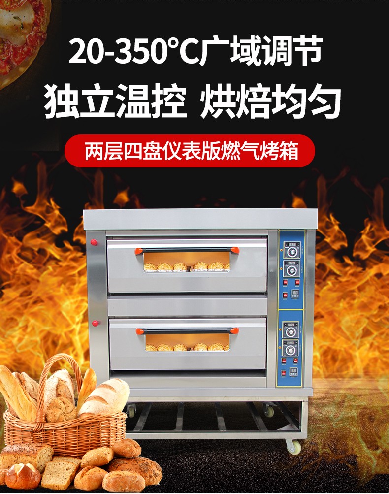 名稱兩層四盤儀表版燃氣烤箱 電源220V 功率0.2KW 產(chǎn)量 尺寸1340*908*1507mm 重量240KG 規(guī)格兩層四盤 其他