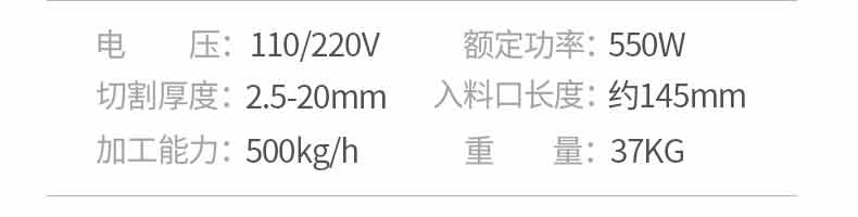 名稱XZ-QX320-切肉機 電源110/220V 功率0.55kw 產(chǎn)量250kg/h 尺寸450*320*430mm 重量33kg 規(guī)格 其他