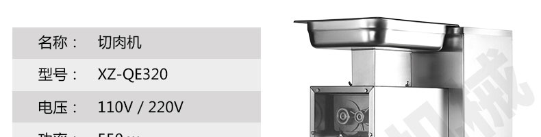 名稱XZ-QE切肉機 電源 功率 產(chǎn)量 尺寸 重量 規(guī)格 其他