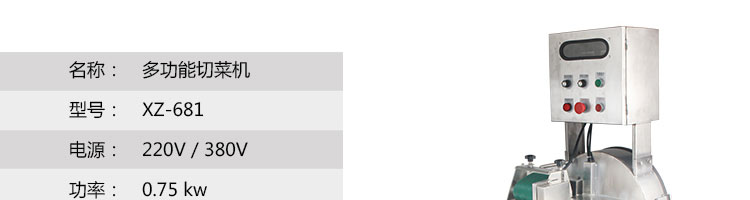 名稱XZ-681多功能切菜機(jī) 電源220/380V(見機(jī)器銘牌) 功率0.75kw 產(chǎn)量500-800千克/小時(shí) 尺寸770*460*1400mm 重量70kg 規(guī)格 其他