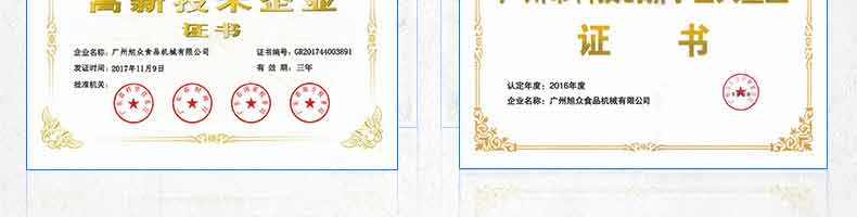 廣州旭眾食品機(jī)械有限公司是一家集科研開發(fā),生產(chǎn)設(shè)計(jì),營(yíng)銷服務(wù)為一體的現(xiàn)代化生產(chǎn)企業(yè)?,F(xiàn)代化生產(chǎn)車間,精湛制造技術(shù),所產(chǎn)機(jī)械歷經(jīng)市場(chǎng)重重考驗(yàn),不斷贏得海內(nèi)外客戶的贊譽(yù)。