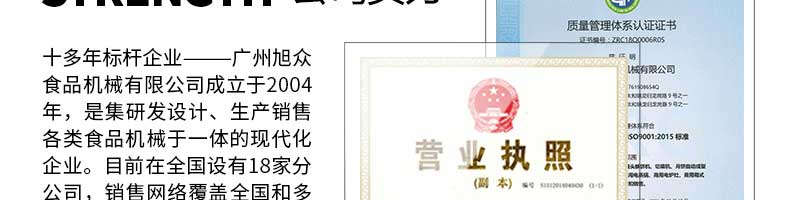 廣州旭眾食品機(jī)械有限公司是一家集科研開發(fā),生產(chǎn)設(shè)計(jì),營銷服務(wù)為一體的現(xiàn)代化生產(chǎn)企業(yè)?,F(xiàn)代化生產(chǎn)車間,精湛制造技術(shù),所產(chǎn)機(jī)械歷經(jīng)市場(chǎng)重重考驗(yàn),不斷贏得海內(nèi)外客戶的贊譽(yù)。