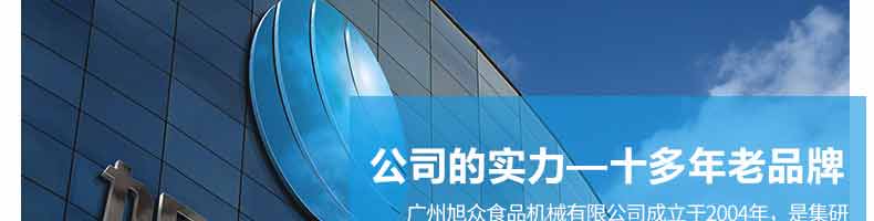 廣州旭眾食品機(jī)械有限公司是一家集科研開發(fā),生產(chǎn)設(shè)計,營銷服務(wù)為一體的現(xiàn)代化生產(chǎn)企業(yè)?,F(xiàn)代化生產(chǎn)車間,精湛制造技術(shù),所產(chǎn)機(jī)械歷經(jīng)市場重重考驗,不斷贏得海內(nèi)外客戶的贊譽(yù)。