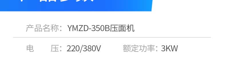 名稱YMZD-350B壓面機 電源220/380v 功率3kw 產量 尺寸1070*620*1020mm 重量150kg 規(guī)格 其他