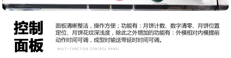 名稱SZ-64月餅自動成型機 電源220V 功率0.4kw 產(chǎn)量40-60個/分鐘 尺寸1760*530*1045mm 重量200kg 規(guī)格25-250克/個 其他