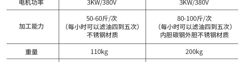 名稱離心濾油機(jī) 電源 功率3kw/380V 產(chǎn)量50-60斤/次,80-100斤/次 尺寸800×800×900mm、900×700×1000mm 重量110KG、200KG 規(guī)格 其他