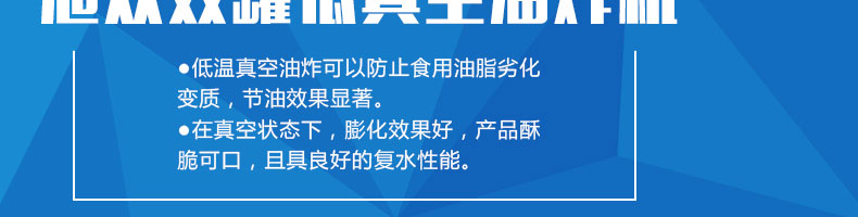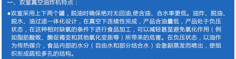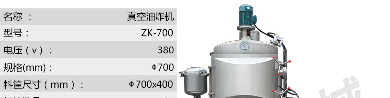 zk-700雙室低溫真空油炸機(jī),適用于水果類、蔬菜類、干果類、水產(chǎn)品機(jī)畜禽肉類等。自動(dòng)控制溫度,無(wú)過(guò)熱、無(wú)過(guò)壓,確保產(chǎn)品質(zhì)量和安全生產(chǎn)。